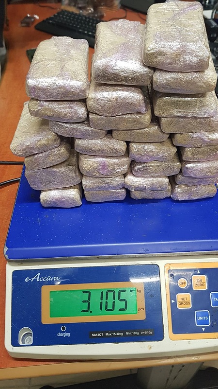 א' חזרה לביתה, הודיעה לאחר כי אספה את החבילה והניחה אותה במרפסת. עוד לפני שהספיקה לפתוח אותה, שוטרים מימ"ר חוף הגיעו לביתה ועצרו אותה. בחבילה נמצא שולחן עץ שבתוכו הוסלקו 59 אריזות חשיש במשקל כולל של כשלושה ק"ג. בחיפוש בבית מצאו השוטרים גם כמויות קטנות של חשיש וקנאביס לשימוש עצמי.