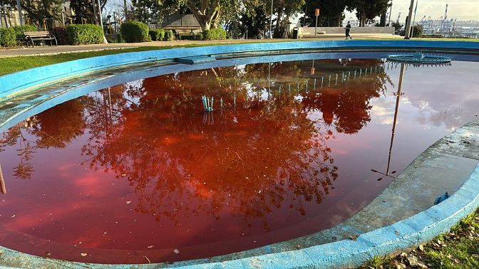 צבע אדום במזרקה בחיפה (צילום: דוברות המשטרה)