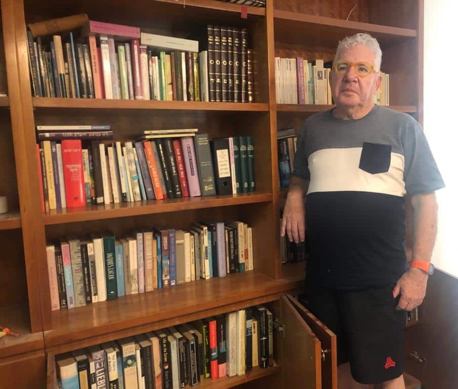 עו"ד אביגדור פלדמן עורך שיפוץ במשרדו, הזדמנות טובה לעשות סדר בספרייה הגדולה שלו, אשר בה מאות ספרים.