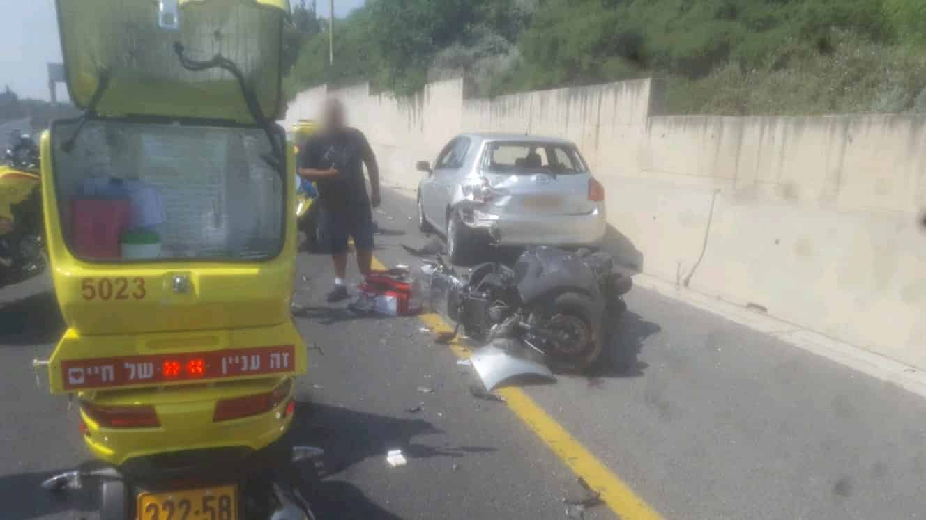 בשעה 09:19 (7.7) התקבל דיווח במוקד 101 של מד"א במרחב דן על רוכב אופנוע שנפגע מרכב בכביש 20 ממחלף לה גווארדיה לכיוון קיבוץ גלויות. חובשים ופראמדיקים של מד"א מעניקים טיפול רפואי ומפנים לבית החולים איכילוב גבר כבן 50 במצב קשה עם חבלות בראש ובחזה.