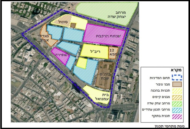 מדובר במתחם המיועד ל"פינוי בינוי" יכלול מספר בנייני מגורים, ביניהם גם כאלה בני יותר מ-40 קומות, וגם מסוף לתחבורה ציבורית. רק כ-20-25 אחוז מהמתחם ישמשו למגורים – כ-3,000 יחידות דיור, רובן בנות 60 מ"ר. רוב המתחם ישמש כאזור תעסוקה ומלונאות.