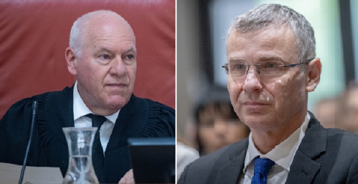השר יריב לוין והשופט עוזי פוגלמן (צילומים: חיים גולדברג, יונתן זינדל, פלאש 90)