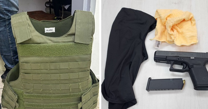 עוד נטען, כי נאשם אחר, קטין בן 16, נשא על גופו אקדח גלוק טעון במחסנית עם שמונה כדורים והחזיק בתיק מסיכת פנים שחורה.