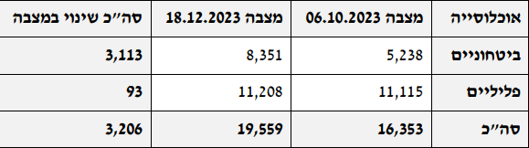כפי שפורסם באתר "פוסטה" כבר לפני שבועיים, מדובר בעלייה של כ-3,400 במצבת הכלואים בתוך חודשיים וחצי מאז פרוץ המלחמה – תוצאה של יותר מ-2,500 עצורים חדשים במבצעי צה"ל ביהודה ושומרון מאז 7 באוקטובר ויותר מ-500 עצורים מרצועת עזה.