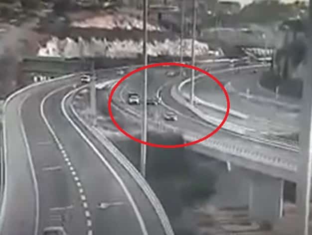 הבוחן העיד שהנאשם נסע בנתיב השמאלי מתוך שני נתיבים בכיוון נסיעתו. בסרטון ניתן לראות רכב סוטה בהדרגה לנתיב הימני, כשהאופנועים נסעו בנתיב השמאלי והיו מאחוריו. במהלך הסטייה שמאלה ניתן לראות היטב בסרטון שהרכב מנגח את שני אופנועים ופוגע בדופן אופנוע שלישי.