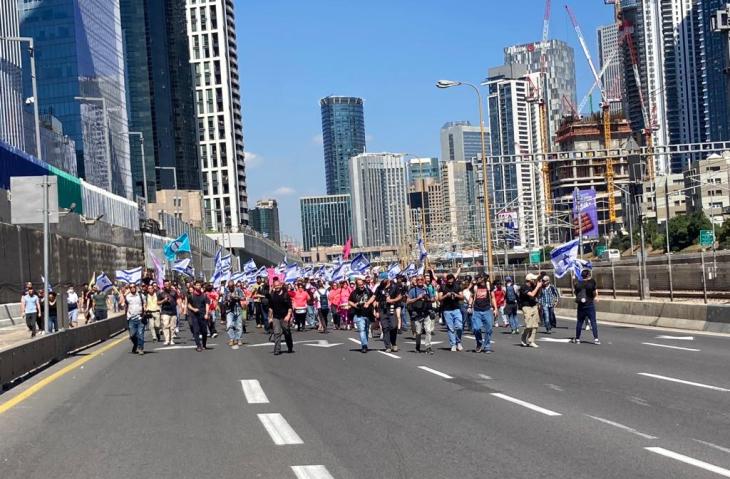 כעיתונאי שמבצע את תפקידו הגעתי גם השבוע הזה לצומת עזריאלי, כדי לתעד את האירוע, לעקוב אחר תנועת המפגינים ולבחון את התנהלות השוטרים. בשלב מסויים נודע לי, שהמפגינים הצליחו לעקוף את השוטרים, ירדו לכביש המהיר וחסמו את נתיבי איילון סמוך לקניון עזריאלי. ניגשתי לקצין האחראי, רב פקד, הצגתי לו את תעודת העיתונאי הממשלתית שלי וביקשתי לרדת לנתיבי איילון כדי לתעד את החסימה. הקצין, שראיתי אותו מפנה מפגינים בצורה תרבותית יחסית, פתח את המחסום ואפשר לי לרדת לנתיבי איילון שם המפגינים צעדו בגאון, מנפנפים בדגלים וצועקים ד-מו-ק-ר-ט-יה מעמקי נשמתם.