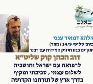 הרב דוב הכהן קוק מטבריה, בן למורשת הרבנים של משפחת קוק בארץ ישראל, ואחד הרבנים המוערכים הפעילים כיום, עם עדת חסידים ומאמינים בכל הארץ, עורך לרגל יום הכיפורים "כנס לחיזוק המידות" על שפת הכינרת.
