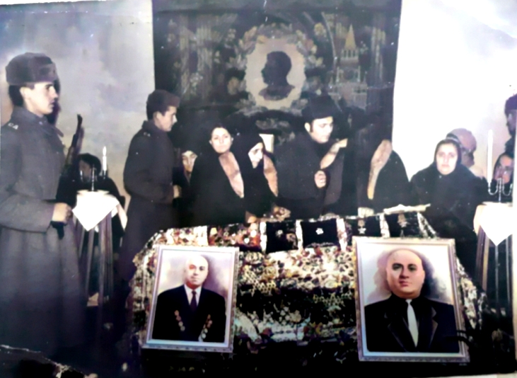 "בשל הכבוד הרב שרחשו לסבי אהרון ז"ל, הלוויתו שהתקיימה בשנת 1974 הייתה יוצאת דופן. על אף היותו יהודי ולמרות שסיים את שירותו הצבאי כשלושה עשורים לפני מותו, הצבא האדום ערך לו הלוויה צבאית עם כל כללי הטקס. תהלוכת הלוויה בליווי הצבא והתזמורת הצבאית עברה ברחובותיה הראשיים של העיר ועשתה עצירה בבית הכנסת המרכזי, שם נישאו ההספדים בעוד החיילים עומדים במסדר מחוץ לבית הכנסת, והמשיכה לבית הקברות היהודי בעיר קוטאיסי. למראה סוריאליסטי מעין זה לא היה אח ורע בכל ברית המועצות בתקופה הקומוניסטית.