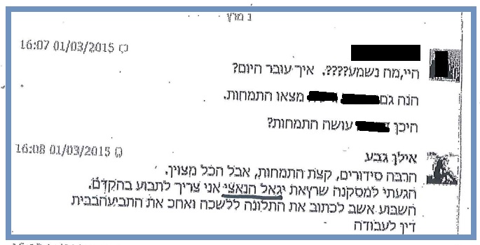 בערעור שהוגש על ידי פרקליט ועדת האתיקה עו"ד רחמים דיין, מוזכר שבית הדין לעבודה פסל את הגשת תכתובות המסנג'ר, וקבע שהגשתן על ידי ראש המשרד "פגעה באופן חמור" בפרטיותו של גבע, אשר כיום הוא כבר בעל משרד עו"ד בעצמו.