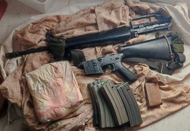 ב-15 במרס פשטו שוטרים על בית ביישוב, ותפסו בתוכו רובה M16 עם 12 מחסניות תואמות, מתוכן שבע טעונות בתחמושת. כמו כן תפסו השוטרים קופסת כדורי תחמושת בקוטר 5.56 מ"מ. החשודה נעצרה ושהתה במעצר עד 24 במרס, אז שוחררה בתנאים מגבילים.