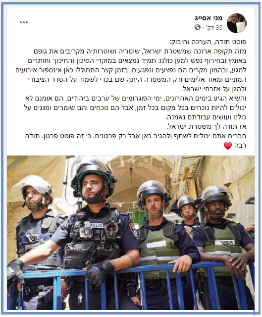 מני אסייג, התסריטאי הראשי של הסדרה הפופולארית "שנות ה-80" בחמש עונותיה הראשונות ואחיו של כוכב הסדרה שלום אסייג, פרסם פוסט תמיכה במשטרה, תחת הכותרת "תודה, הערכה וחיבוק". לא נגענו.