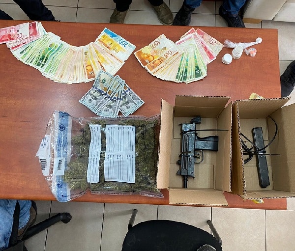 בפעילות יזומה של שוטרי תחנת שכונות בשכונת עזרא בתל אביב איתרו השוטרים 424 גרם של חומר כקנאביס (הידרו), 1.2 גרם קריסטל, כדורי אקסטזי וסמים מסוג MDMA, סמוך לגדר בית פרטי. בנוסף, השוטרים מצאו רובה עם משתיק קול ומחסנית. בחיפוש בבית תפסו השוטרים 20 אלף שקל במזומן, החשודים כ"פדיון מפעילות פלילית", אופנוע ורכב פרטי.