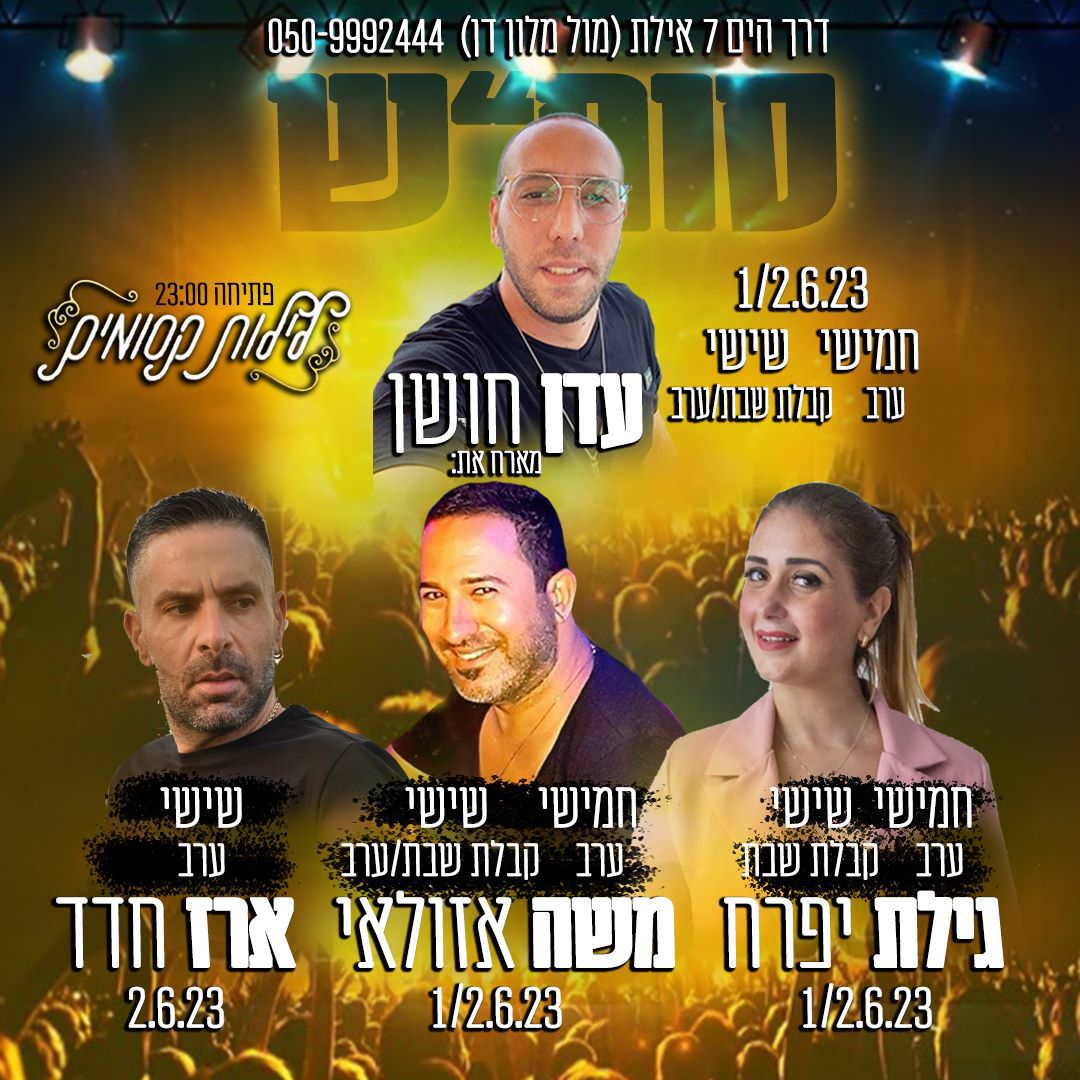 ליין הכוכבים מארח בהופעות מלאות את: כפיר דנו, שלומי דהן, שני נידם.