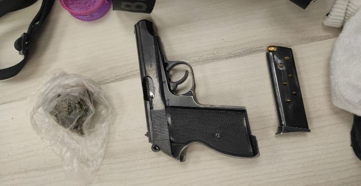 השוטרים עצרו את השניים לבדיקה, ובמהלך חיפוש בתיקם נמצאו אקדח מסוג ברטה, מחסנית תואמת עם כדורים וחומר החשוד כסם מסוג קנאבוס לצריכה עצמית.
