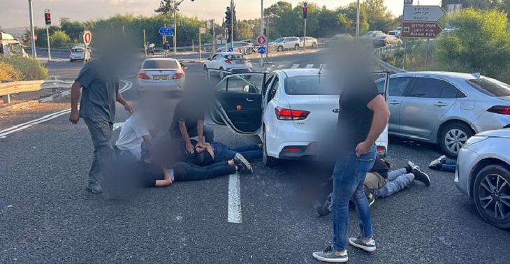 הבלשים שעקבו אחר הרכב החשוד עצרו את החשודים סמוך צומת לטרון.