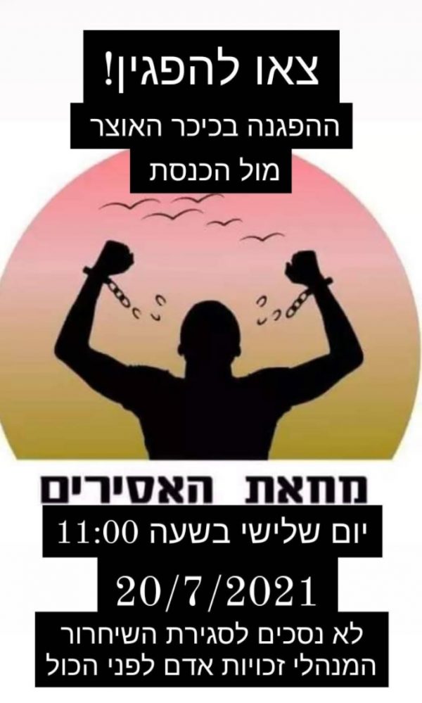 כשבועיים לאחר שהופסקו השחרורים המנהליים של אסירים הקרובים למועד סיום עונשם, יוני יהב, פעיל "מחאת האסירים" הודיע על התארגנות להפגנת מחאה שתקיים ב – 20 ביולי מול הכנסת.