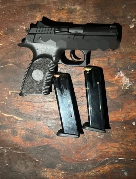 עם קבלת הדיווח ביצעו בלשי התחנה ולוחמי מג"ב כניסה מהירה למקום והשתלטו על יושבי המתחם. בחיפוש במקום בשילוב יחידת הכלבנים נתפס אקדח טעון, מחסנית נוספת, כפפות, ערכת ניקוי נשק וערכת DVR. בסיום נעצרו שניים מיושבי המתחם: