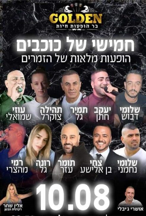 חמישי של כוכבים: שלומי דבוש, יעקב חתן, תמיר גל, תהילה צוקרל, עוזי שמואלי, שלומי נחמני, צחי בן אלישע, תומר עזר, רונה גל, רמי מהצרי, רקדנית הבטן אלין שחר.