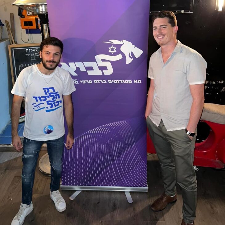 בתא הסטודנטים של הליכוד באוניברסיטה העברית עם סגנו, אדיר מריאנובסקי