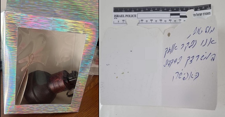 הקטין ירד, הניח חבילה בכניסה, וחזר מיד לקטנוע. השלושה נמלטו מהמקום כשהם משאירים את הרימון והפתק המאוים מאחור.