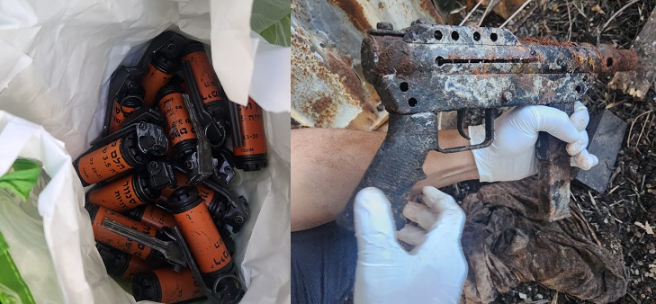 בתוך המבנה נחשפו פריטי אמל"ח, ביניהם רובה קרלו, מחסניות, תחמושת ו-20 רימוני הלם.