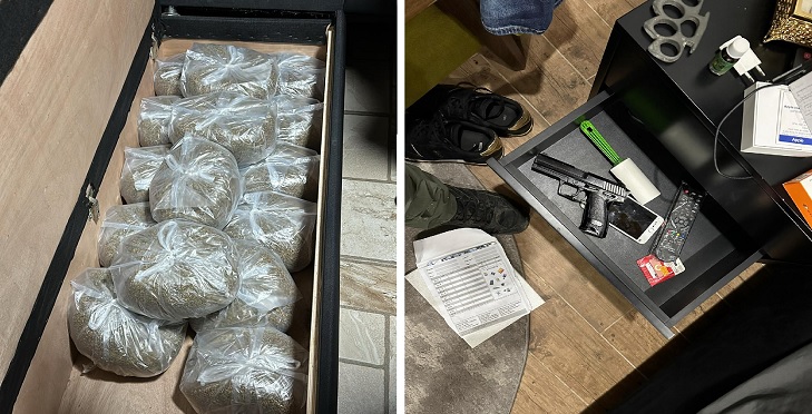 אקדח וסמים שנתפסו על ידי המשטרה בסוף השבוע (צילומים: דוברות המשטרה)