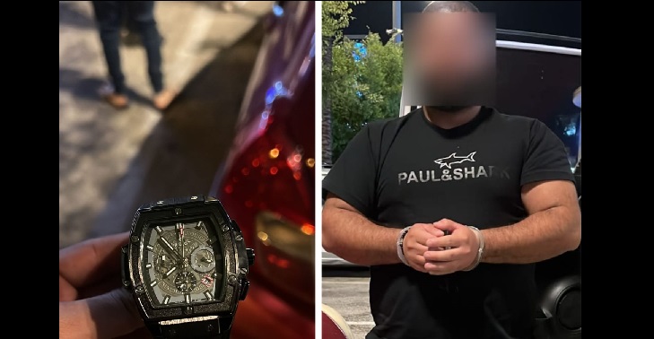 הנאשם ואחד השעונים שנגנבו (צילומים: משטרה)