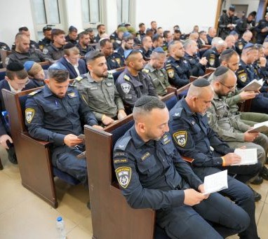 קריאת מגילה בבבית הכנסת המרכזי של המכללה הלאומית לשוטרים במעמד ראש הממשלה בנימין נתניהו, מ"מ השר לביטחון לאומי חיים כץ ומפכ"ל המשטרה דניאל לוי (13 מרס).