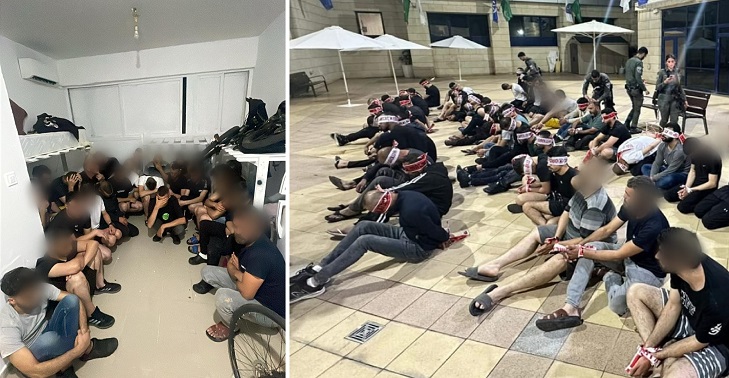 לדרישת הלוחמים להגיע למקום בו לנים החשודים, הם הובילו אותם למבנה מסחרי המחולק למספר דירות. בחיפוש שביצעו הלוחמים במבנה הם איתרו 61 שוהים בלתי חוקיים (שב"חים) תושבי השטחים, שלנים במספר דירות בקומה ובהן עם מיטות קומותיים.