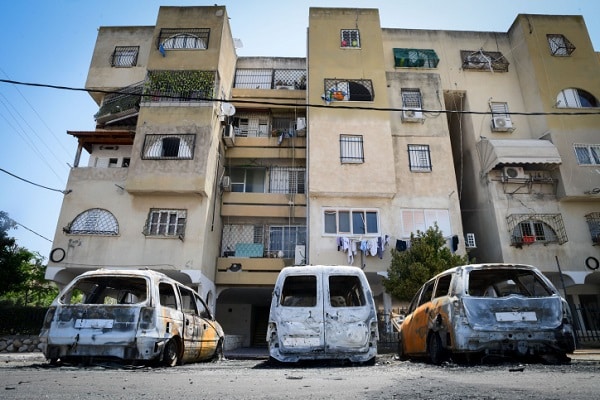 מכוניות שהוצתו בעיר לוד (צילום: אבשלום ששוני, פלאש 90)
