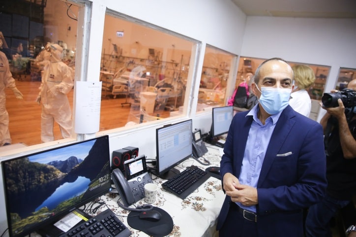 כתף קרה? פרופ' רוני גמזו בביקור במחלקת קורונה בבית חולים (צילום: דוד כהן, פלאש 90)