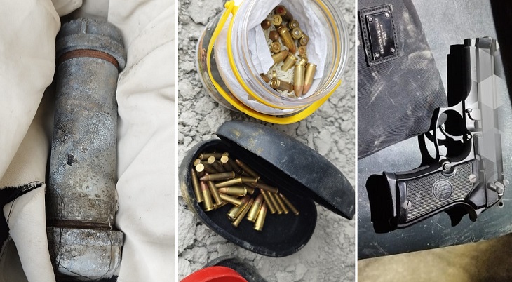 האקדח, התחמושת והמטען שנתפסו (צילומים: משטרה)
