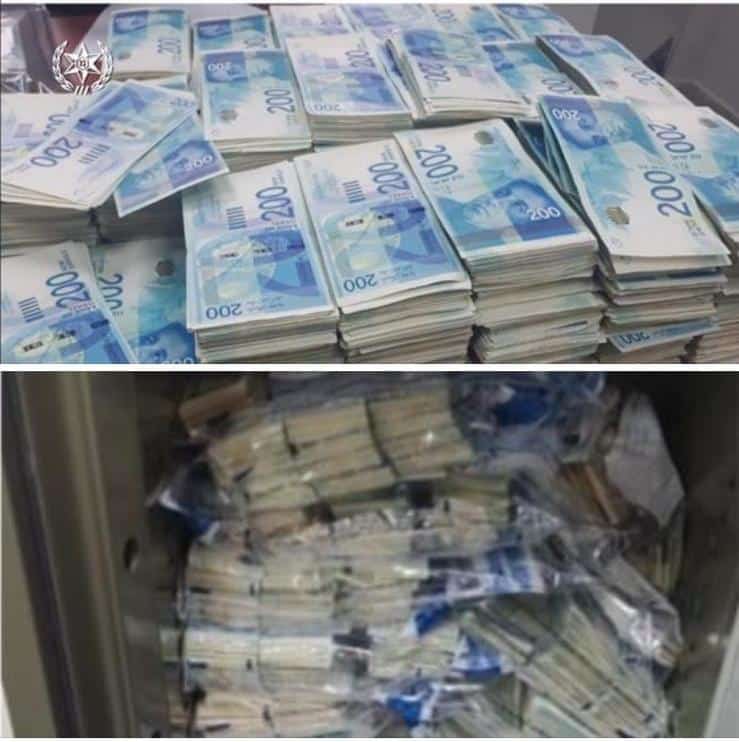 כן נתפסו עשרות אלפי דולרים, אירו ודינר ירדני.