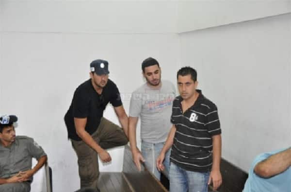 עדכון: ביום פרסום הכתבה פורסמה בטעות תמונתנו של רפ"ק דוד חיימוב בלבד ולא של האסיר מנחם עמיאל אשר עמד לידו. עם קבלת ההודעה על הטעות התמונה הוגדלה כך שכללה את האסיר ואת השוטר חיימוב (בחולצת הפסים) אשר ליווה אותו לבית המשפט מתוקף תפקידו במשטרה. אנו מתנצלים מקרב לב על עגמת הנפש שנגרמה בעקבות הפרסום.