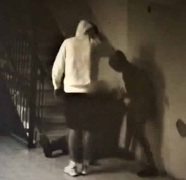 הנאשמים והקורבן בחדר המדרגות ברחוב טרומפלדור בנתניה
