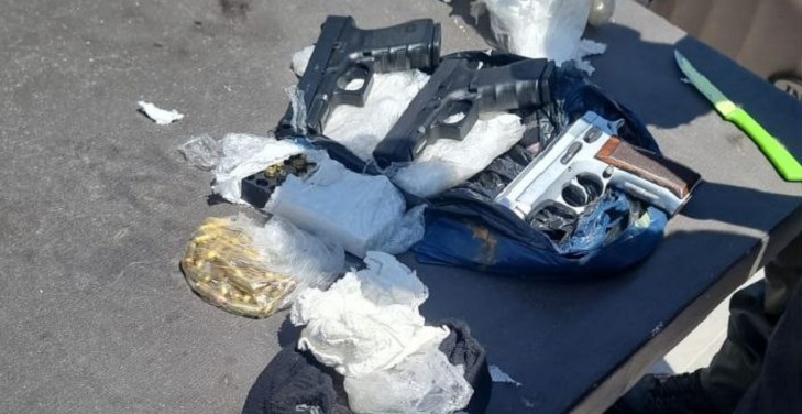 במהלך החיפוש אותרו שני אקדחים מסוג גלוק ואקדח מסוג יריחו עם מחסניות ותחמושת, כמו גם כ-30 אלף שקל במזומן.