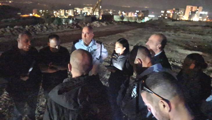 התייעצות ראשונית של פיקוד מחוז צפון עם ניצב שוקי תחאוכה באזור זירת הרצח (דוברות המשטרה)