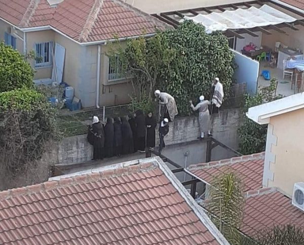 חסידי הרב מציצים לבית בזכרון יעקב (צילום: רשתות חברתיות תושבי זכרון יעקב)