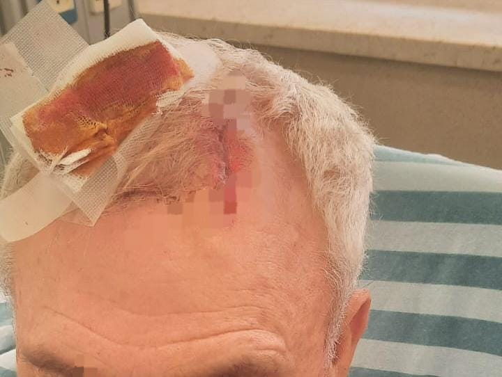 כתוצאה מהתקיפה נגרם לקשיש חתך אורכי בחלק הקדמי של הקרקפת, שנתפר לאחר הרדמה מקומית.