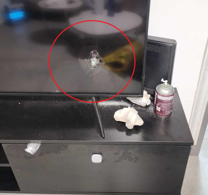 נטען כי בשלב זה ובעקבות נביחות של כלבתו, נפגע העבירה פתח את דלת הבית וכשהבחין בנאשמים סגר מיד את הדלת ונעמד מאחוריה. יעקב ירה ירייה אחת לעבר הקיר שסמוך לדלת, הקליע עבר דרך הקיר לסלון, פגע בטלוויזיה ויצר חור. מיד לאחר מכן נמלטו השניים מהמקום.