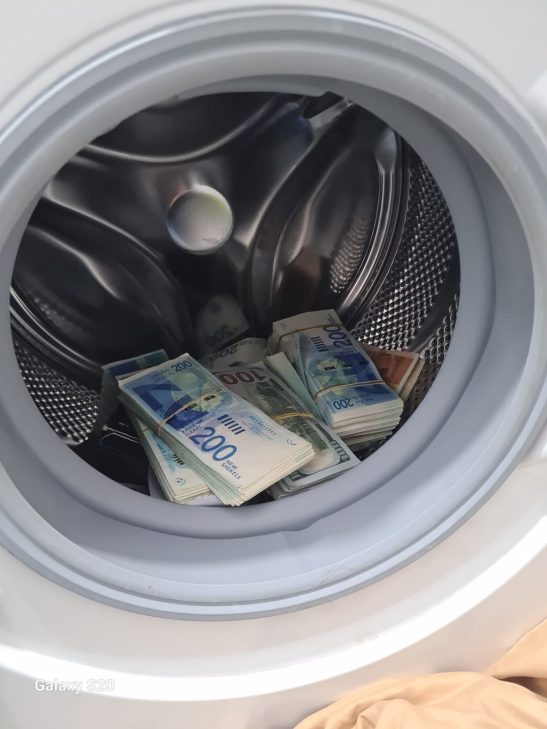 בחיפוש בבתי החשודים אותרה כספת ובה מאות אלפי שקלים במזומן, וכסף נוסף במזומן הוסתר בתוך מכונת כביסה. עוד נתפסו צ'קים.