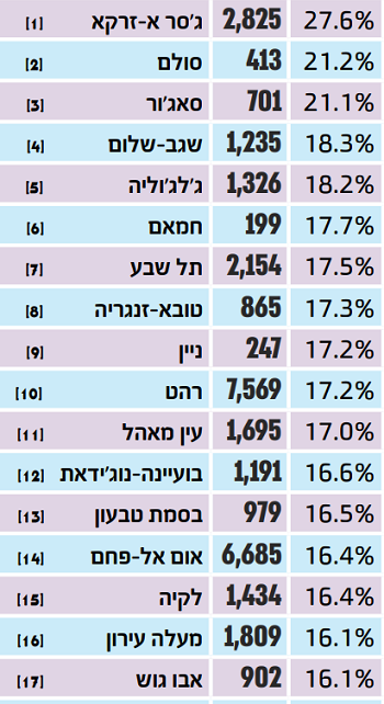 באום אל-פאחם 16.5 אחוז מהתושבים הם חייבים.