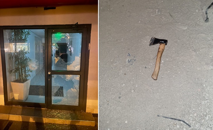 היום בשעות הבוקר המוקדמות הבחינו הבלשים בקטנוע שעורר את חשדם ועליו שני רוכבים סמוך למבנה המשרדים. השניים ניסו להימלט ונעצרו לאחר מרדף קצר ובעקבות ירי של הבלשים באוויר. סמוך לחשודים נתפס גרזן שלפי החשד שימש אותם לגרימת הנזק במבנה. ברשות אחד מהם נתפס חומר החשוד כקוקאין.
