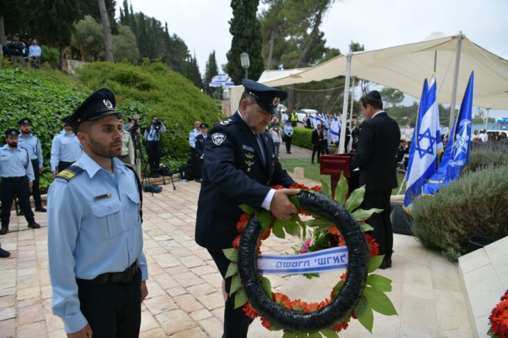 הטקס של המשטרה לציון יום הזיכרון לחללי מערכות ישראל ולנפגעי פעולות האיבה התקיים בחלקת המשטרה בבית העלמין הצבאי בהר הרצל, לזכרם של 1,546 חללי משטרת ישראל שנפלו מאז ימי קום המדינה (4 מאי).