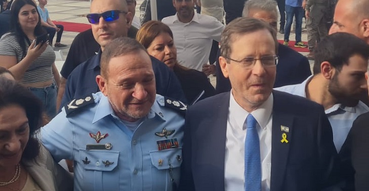 לצלילי i did it my way המרגש של פרנק סינטרה נכנס המפכ"ל לאולם מלווה בנשיא המדינה יצחק הרצוג ויו"ר הכנסת אמיר אוחנה. בשורה הראשונה המתינו לו ראש המוסד דוד ברנע וראש שב"כ רונן בר, שהתפנו מהמצוד אחרי מוחמד דף ויחיא סינוואר, אבל גם ממטלות המשא ומתן המטלטלות עם ראש הממשלה בנימין נתניהו.