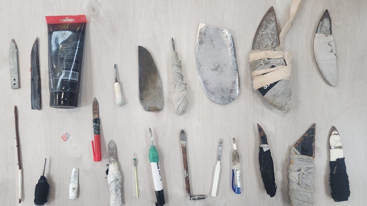 פעילות מבצעית בכלא איילון: נתפסו כלי תקיפה מאולתרים ופריטים אסורים
