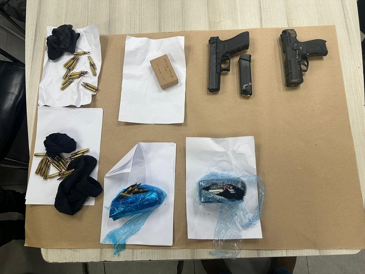 החשוד, עומרי ראבי (22), מזוהה עם עם ארגון האחים חרירי ועייאט. הוא נעצר לאחר שבחיפוש שביצעה המשטרה בבית קרובת משפחתו, בסיוע יחידת הכלבנים של מחוז מרכז וחבלנים, אותרו כלי נשק וסכום גדול של כסף מזומן: 80 אלף שקל, 1,500 יורו, 8,000 דולר וכ-1,000 לידות ירדניות וטורקיות.