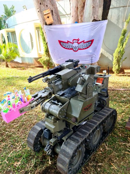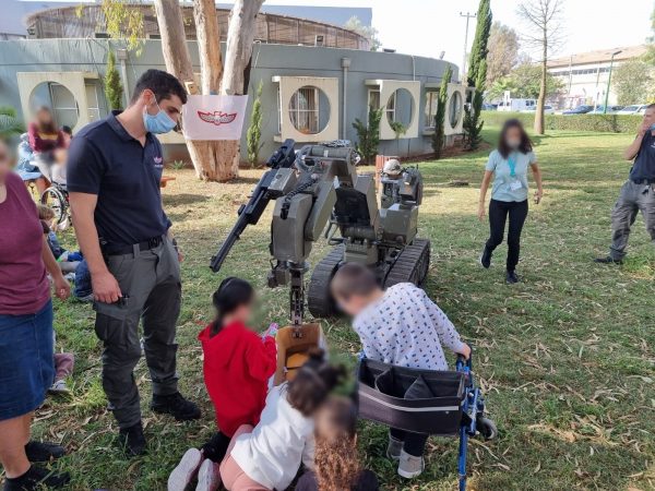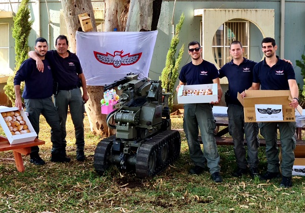 בסיום חילק רובוט החבלה המשטרתי הפתעות וסופגניות לילדים.