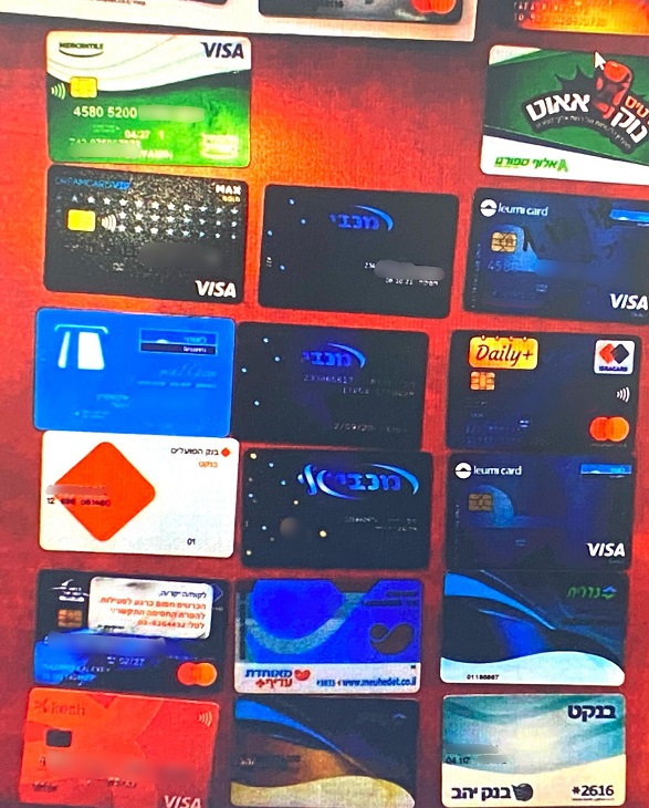 כרטיסי אשראי שנתפסו אצל הנאשמת (צילומים: משטרה)