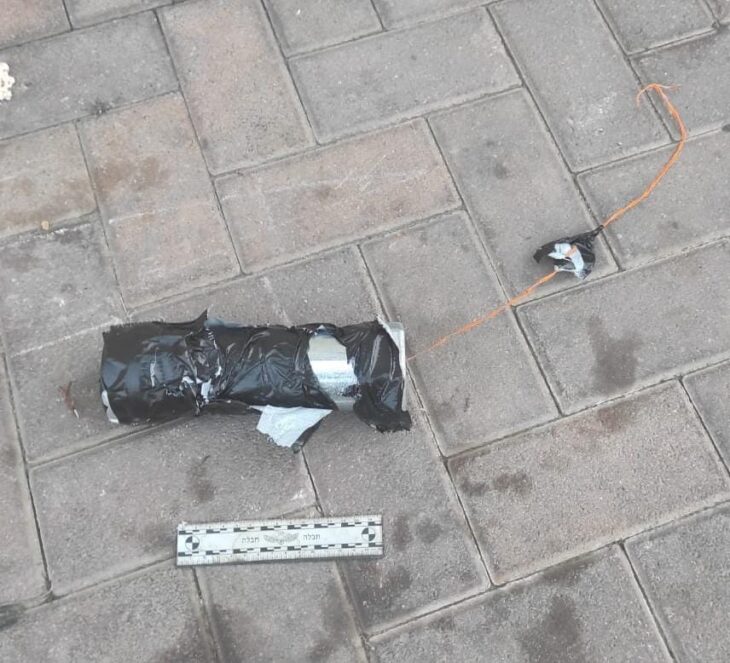 המטען שהונח בפתח ביתו של בעל המסעדה (צילום: משטרה)